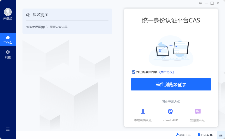 第三方廠商訪問校內特定服務器,執行運維工作,請使用aTrust客戶端,使用“本地密碼認證”進行登錄,用戶名和密碼請使用網信中心分配的用戶名和密碼,請注意及時修改密碼,保證安全。