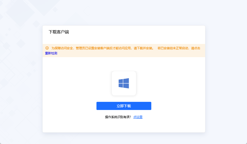 請在瀏覽器內直接訪問https://atrust.ytu.edu.cn,首次訪問,需要安裝客戶端,如圖所示