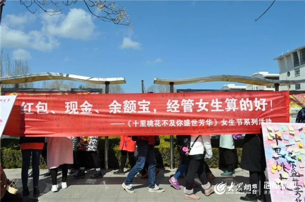 3月7日,即三八婦女節的前一天,不少高校大學生將這一天視為“女生節”。當天,煙臺大學校園里女生節的相關活動正如火如荼地進行著。
