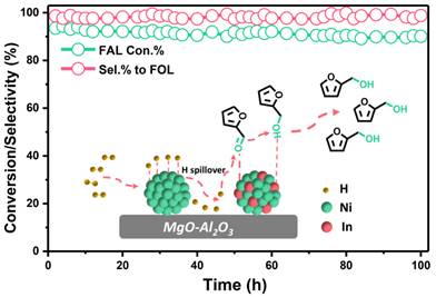 不飽和醛加氫研究工作取得新進展——Ni-Ni2In雙活性位催化劑催化糠醛加氫轉化為糠醇