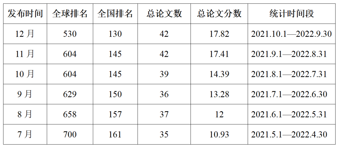 2022年以來,我校自然指數總體呈上升態勢,本月與上月自然指數排名(統計時間節點為2021年9月1日至2022年8月30日)相比,呈現快速提升態勢。自然指數(Nature Index)統計數據說明我校在自然科學領域的高質量研究產出不斷提高。