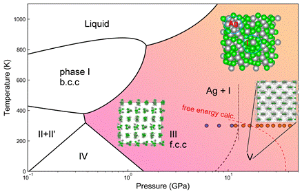 科學家在早期研究發(fā)現(xiàn),外部壓力可以改變化學鍵的性質并觸發(fā)新的反應,并因此提供新的合成方案來補充傳統(tǒng)的基于溶劑或熱的方法。碘化銀作為一種典型的離子晶體,在高溫高壓下進入超離子態(tài),其中碘離子形成離子框架,銀離子可以在框架內自由流動,在制造固體電池電解液方面具有重要的應用價值。