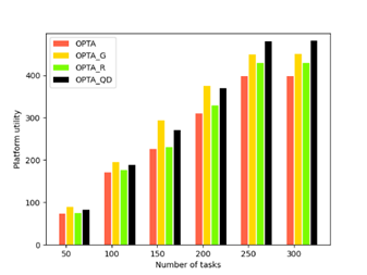 系列成果以物聯網(IoT)快速發展和5G網絡快速普及背景下的移動眾包(MCS)為研究對象,對其中的關鍵環節——任務分配如何在有限的預算下盡可能提高任務完成率展開研究。該成果首先針對請求者預定任務執行和工人在線的場景,提出一種基于時間和位置約束的任務預分配方法(ORTA),在優化模型(OPTA)的基礎上,篩選出預離開任務集。其次,提出基于Q-learning算法的激勵機制,確定預離開目標任務并對其增加報酬,激勵眾包工人參與任務,從而提高任務完成率。最后,通過在真實數據集上的對比實驗驗證了提出方法的性能。圖1為系統總體框架圖。