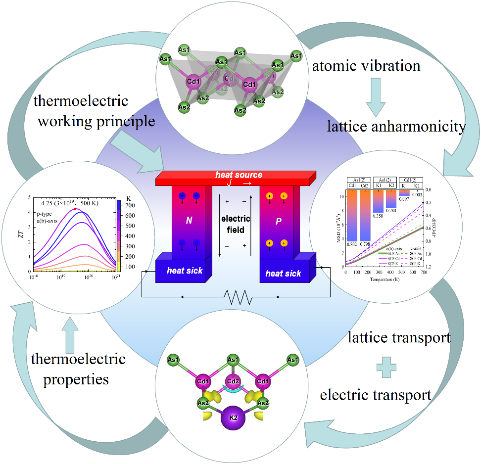 文章題目:Effects of rattling behavior of K and Cd atoms along different directions in anisotropic KCdAs on lattice thermal transport and thermoelectric properties
