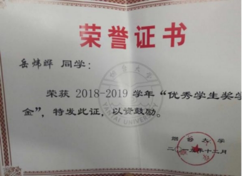 本科四年,其成績保持在專業前15%,連續獲得優秀學生獎學金和優秀學生干部獎學金。先后獲得2018年度優秀共青團員、2019和2020年度優秀共青團干部、志愿服務先進個人、優秀抗疫青年志愿者榮譽稱號,并被評選為2022年度山東省優秀畢業生。