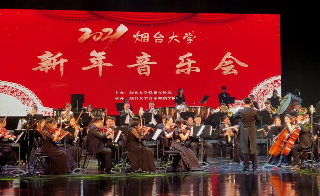 自2015年以來,煙臺大學已連續舉辦6年新年音樂會。通過觀賞一場由本校師生帶來的音樂盛宴迎接新年的到來,已成為煙大師生辭舊迎新的“文化傳統”。而今年,煙臺大學新年音樂會不僅加入了原創紅色舞劇,還首次走出校園,選擇在煙臺的膠東劇院演出,體現了學校對于充分挖掘膠東豐富的紅色文化資源,讓廣大師生成為膠東紅色文化與革命精神的傳承人與傳播者的高度重視和大力支持。近年來,煙臺大學著力打造的“熱血膠東·紅色育人”系列活動,正通過大學生宣講會、紅色音樂傳唱會、原創紅色舞劇表演等多種形式,走近師生、走出校園、走向社會,日益成為煙臺大學擦亮立德樹人底色,厚植愛國主義情懷,傳承膠東紅色基因,服務文明城市創建的重要品牌。