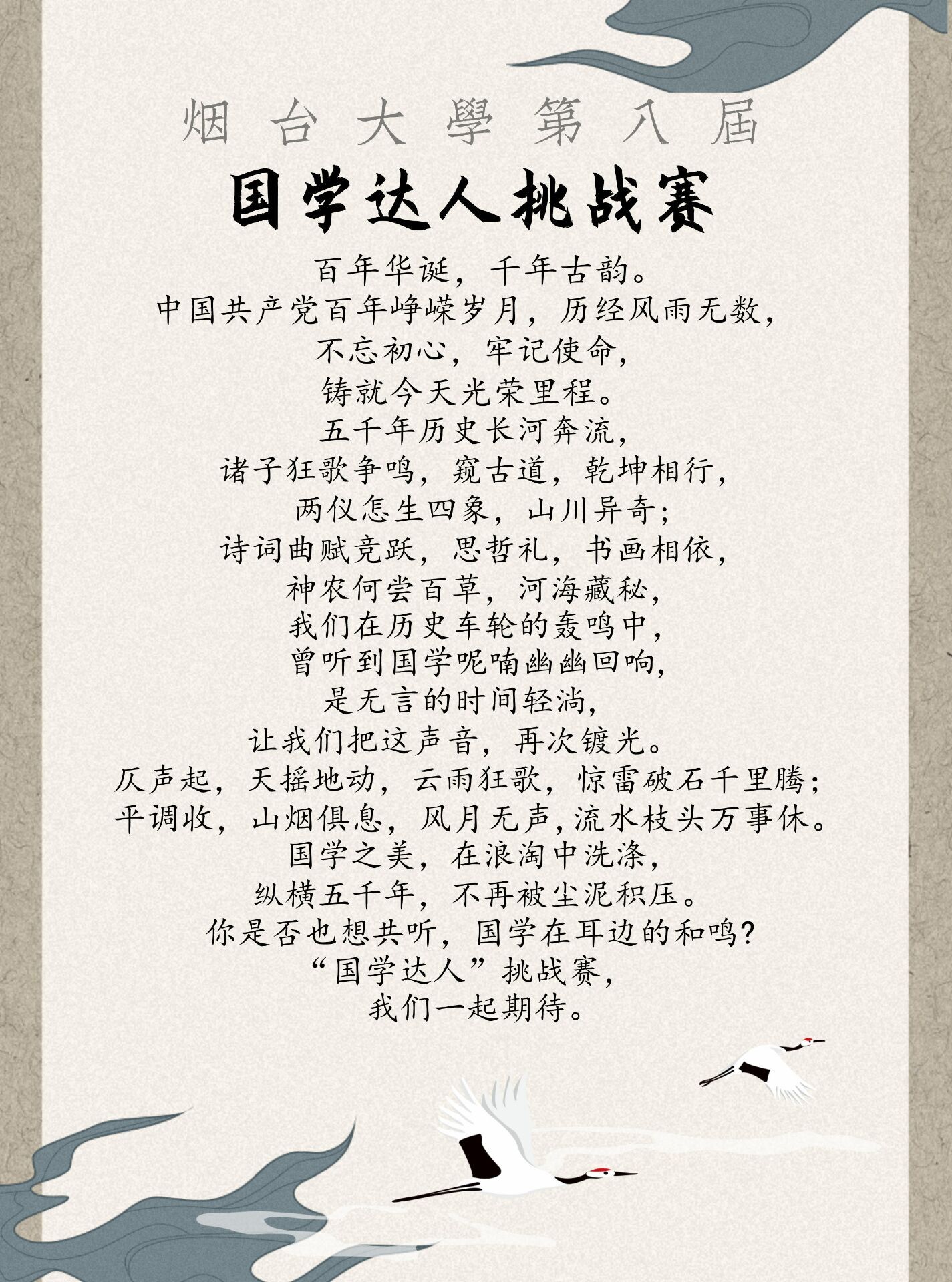 活動名稱:國韻千載耀山河 建黨百年著華章——煙臺大學第八屆國學達人挑戰賽