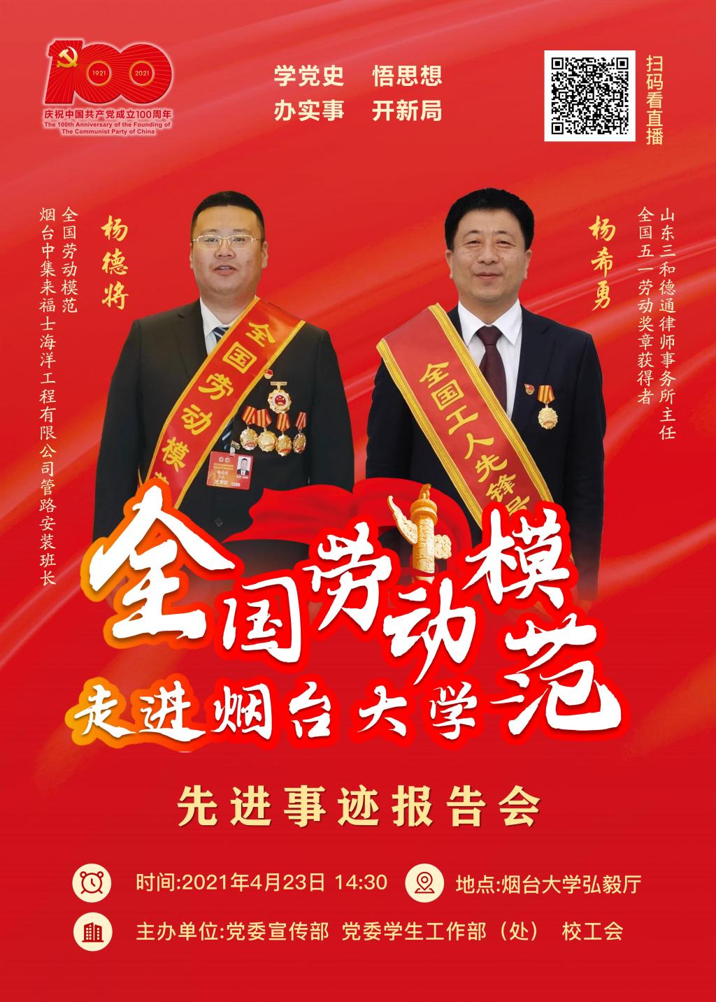 活動名稱:全國勞動模范走進煙臺大學 先進事跡報告會