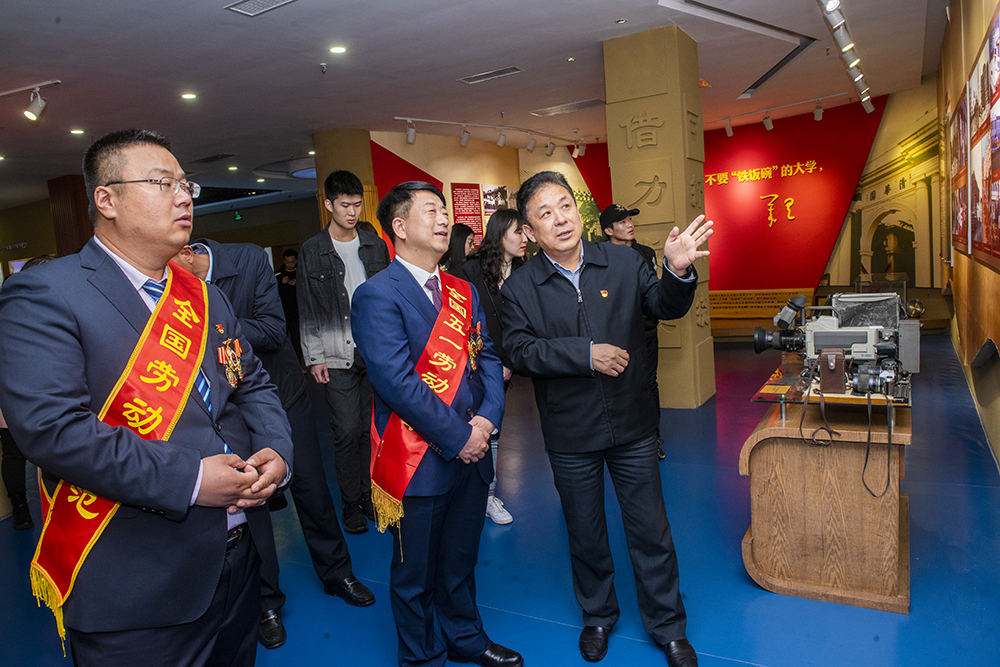 報(bào)告會(huì)結(jié)束后,兩位勞模與師生代表現(xiàn)場(chǎng)進(jìn)行了互動(dòng)交流,并一同參觀了校史展館。同學(xué)們闡述了自己在學(xué)習(xí)、實(shí)踐方面的困惑,楊希勇、楊德將勉勵(lì)同學(xué)們要加強(qiáng)學(xué)習(xí)、踏實(shí)沉淀,積極將所學(xué)用于實(shí)際,大膽嘗試、不斷提升自我。同時(shí)希望學(xué)生黨員們發(fā)揮示范作用,帶頭攻堅(jiān)克難、傳播正能量,帶領(lǐng)周圍同學(xué)一起進(jìn)步。