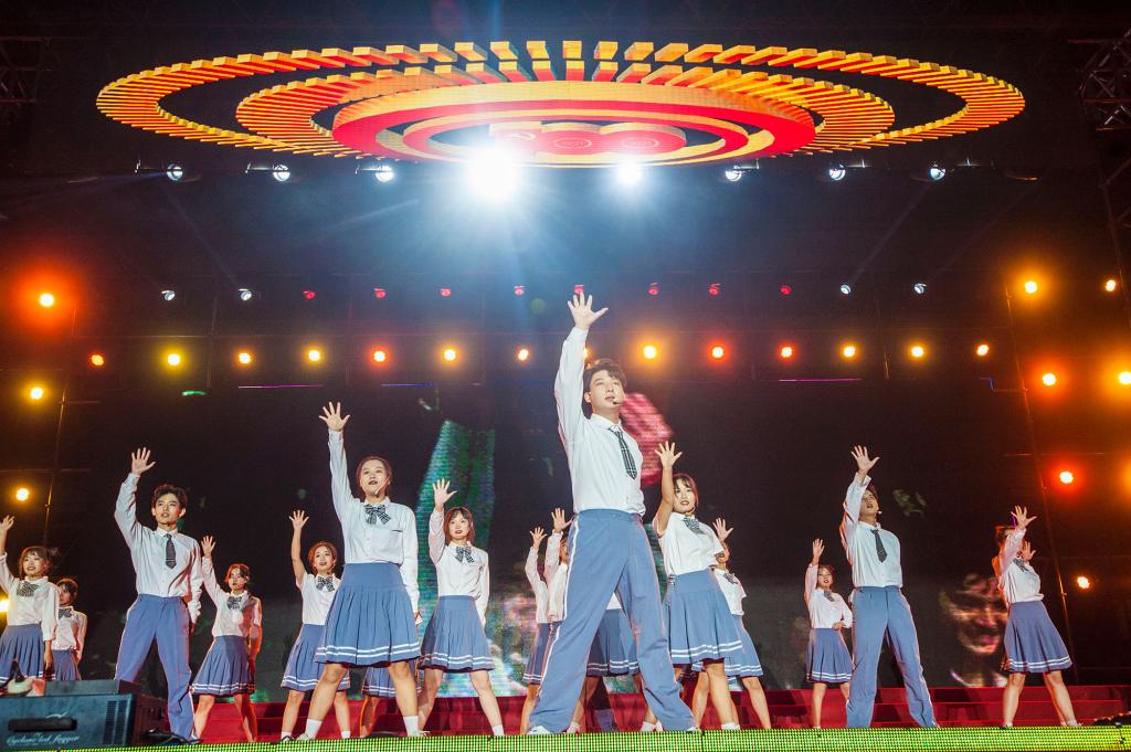 伴著充滿活力的《奔跑的青春》,整臺晚會拉開帷幕。朝氣蓬勃、青春洋溢的青年學子在舞臺上鋪陳開一幅繽紛的新時代青春畫卷。整場晚會分為“吶喊”“紅日”和“破浪”三個篇章,每一篇章以情景講述開啟,涵蓋歌曲、舞蹈、朗誦、器樂演奏等多種表演形式,內容豐富、精彩紛呈,體育場內掌聲和歡呼聲交相呼應。