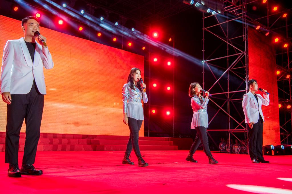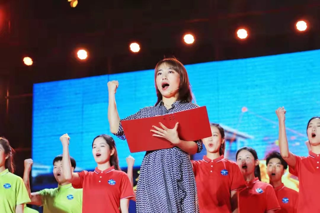 第一篇章中,情景講述《吶喊》,趙文靜老師講述了煙大在與黨同向同行的歲月里,有關奮斗的夢想與榮光,激勵青年學子要堅定理想信念、樹立家國情懷,爭做有志氣的時代新人。朗誦《革命者》,展現(xiàn)了毛澤東等革命先輩為國家和民族“實踐其所信,勵行其所知”的偉大建黨精神。歌舞建黨百年版《少年》,以青年之名,唱響百年黨史、舞動紅色青春。快板表演《煙大頌》,回顧了我校三十七載艱辛創(chuàng)業(yè)史,彰顯了一代又一代煙大人勠力同心、克服萬難的責任擔當,引發(fā)現(xiàn)場師生的強烈共鳴。第二篇章中,情景講述《紅日》,王緒敏老師講述了一代代煙大人以實際行動踐行跟黨走的理想追求,激勵青年學子要有剛強的意志和不屈的姿態(tài),爭做有骨氣的時代新人。器樂合奏《赤焰之纓》,情隨弦起,心隨鼓動,催人奮進。舞蹈《堅守?逐夢》,用婀娜的舞姿舞出了對信念的堅守和對夢想的憧憬。歌曲《追夢之路》,抒發(fā)了當代青年矢志奮進新征程的家國情和報國志,絢麗的舞臺燈光與揮舞的熒光棒交相輝映,瞬間點燃現(xiàn)場激情。第三篇章中,情景講述《破浪》,王瑩潔老師和學生代表共同講述了新時代煙大人將自己的所知所學投入到黨和國家的事業(yè)當中,投身加快實現(xiàn)高水平大學的建設當中,激勵廣大青年學子要練就過硬本領,爭做有底氣的時代新人。四位輔導員傾情演唱《翱翔》,情感真摯,唱出了對學生深深的祝福和殷切期盼。舞蹈《夢想點亮未來》,新穎炫酷、科技感十足。歌曲《乘風破浪再出發(fā)》《燈火里的中國》《走向復興》,恢弘大氣,禮贊時代、祝福祖國,抒發(fā)了煙大人滿懷豪情再啟新程,在接續(xù)奮斗中再創(chuàng)輝煌的信心。