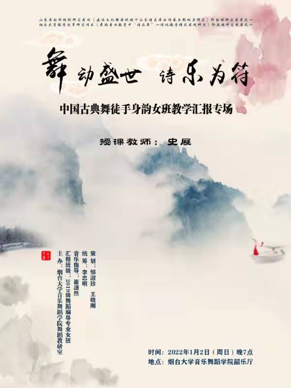 活動(dòng)名稱:舞動(dòng)盛世 詩(shī)樂為符——中國(guó)古典舞徒手身韻女班教學(xué)匯報(bào)專場(chǎng)