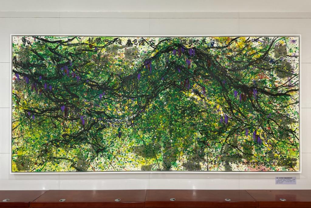 巨幅長藤蘿畫作  懸掛于承先圖書館
