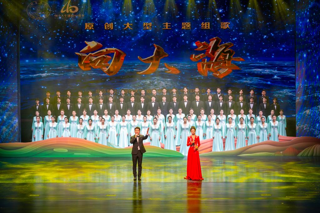 【本站訊】為慶祝煙臺成為全國首批沿海開放城市和煙臺大學建校40周年,10月16日晚,由煙臺大學和煙臺市文學藝術屆聯合會出品、中共煙臺市委宣傳部和山東省音樂家協會指導、煙臺大學音樂舞蹈學院演出的大型原創主題組歌《向大海》在煙臺大劇院首演。山東省教育基金會理事長、山東省教育廳原一級巡視員劉欣堂,煙臺市委宣傳部副部長、市新聞和出版局局長宮志剛,山東省音樂家協會駐會副主席、秘書長武洪昌,煙臺市文學藝術屆聯合會黨組書記宋作新,煙臺大學校領導盧國強、郝曙光、王強、白青、姚昌、張獻勇、王麗、初磊、劉偉出席并觀看了演出。