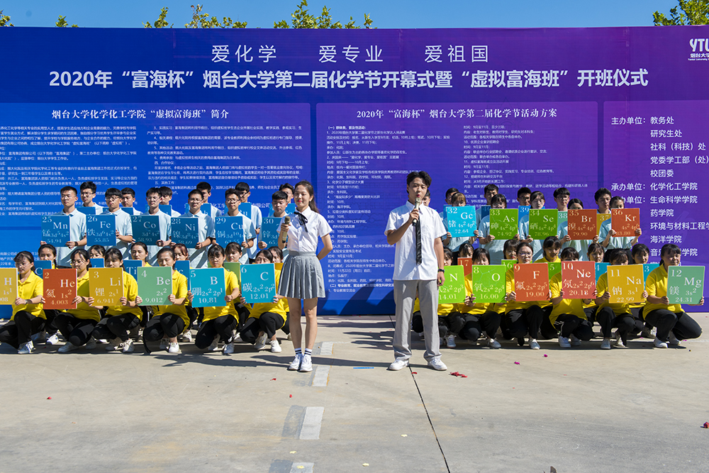 為加強對學生的專業(yè)教育,豐富學生就業(yè)途徑,創(chuàng)新宣傳教育方式,9月19日上午,2020年“富海杯”煙臺大學第二屆化學節(jié)開幕式在南校區(qū)迎新現(xiàn)場正式舉行,將“愛化學,愛專業(yè),愛祖國”的濃厚氛圍融入到了新生入學報到的第一天。