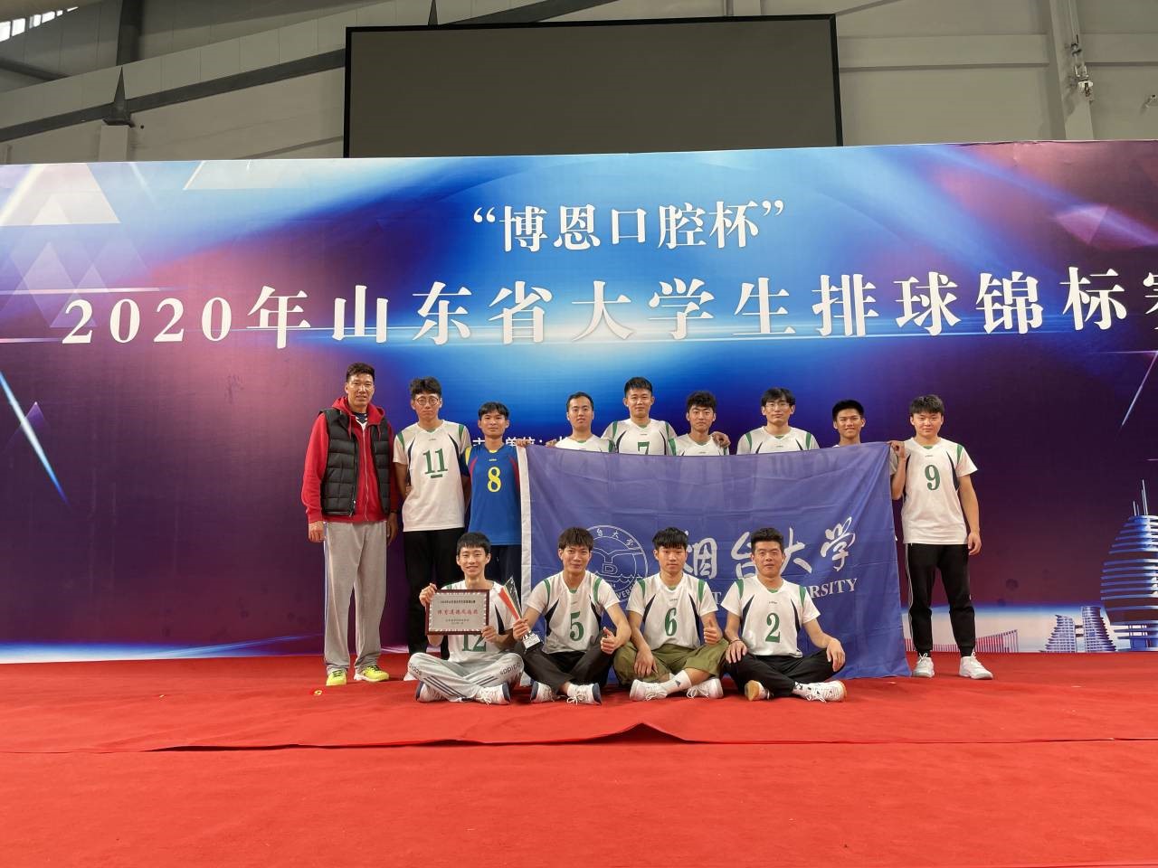 11月14日—18日,2020年山東省大學(xué)生排球錦標賽在日照舉行,比賽設(shè)甲(本科院校普通學(xué)生組)、乙(高職高專院校普通學(xué)生組)、丙(體育專業(yè)學(xué)生組)三個組別,來自全省32所高校的45支參賽隊伍共500余名運動員參加了比賽。經(jīng)過激烈角逐,煙臺大學(xué)排球隊奪得了甲組第三名的好成績,教練武學(xué)亮老師獲評“最佳教練員”,周亞智、王政偉兩名同學(xué)獲評“優(yōu)秀球員”。