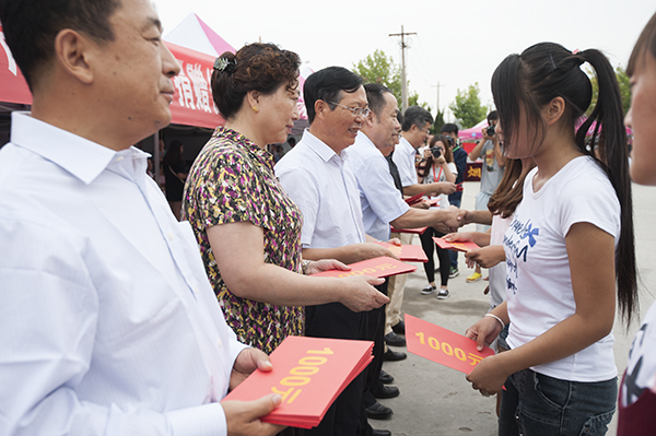 9時30分,佳隆集團“關愛學子,助力成長”愛心捐贈儀式在南校區迎新現場舉行,佳隆集團本次捐資10萬元,資助我校2014級家庭經濟困難學生。學校領導崔明德、房紹坤、孫祥斌、鄧昌亮,佳隆集團董事長欒魯閩、副總裁徐泰利、財務總監王榮華為50名貧困新生發放了首批5萬元資助金。欒魯閩董事長在致辭中說,再次進入母校,母校已走過了30個春秋,作為煙大的校友,希望能為家庭經濟困難的學生盡一點微薄之力,他鼓勵同學們把暫時的經濟困難轉化成學習的動力,努力實現自己的夢想。孫祥斌副校長對佳隆集團的資助表示感謝,并叮囑同學們努力學習,奮發成才。