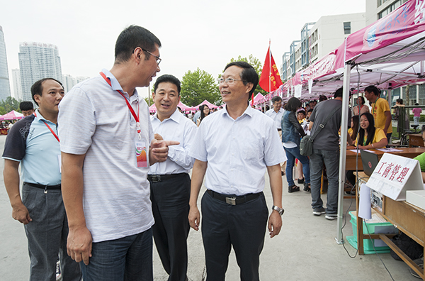 9月7日上午,煙臺大學黨委書記崔明德,校長房紹坤,副校長孫祥斌、鄧昌亮在學校相關職能部門負責人的陪同下來到南校區迎新現場看望2014級同學,并出席了佳隆集團愛心捐贈儀式。