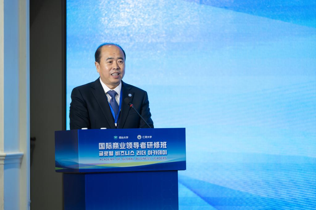 郝曙光在致辭中介紹了煙臺大學建校歷史、發展成就和國際合作情況。他指出,國際商業領導者研修班的正式啟動是煙臺大學與仁荷大學深化校際合作新的里程碑,也是雙方共同推動中韓高等教育交流的重要舉措,希望雙方以此為契機持續拓展合作領域,探索聯合培養、企業實習、創新創業等多層次、多維度的合作模式,為兩校師生搭建更廣闊的國際化學習與實踐平臺,為培養具有全球視野、創新精神和實踐能力的高素質國際化人才提供更加優質的資源和環境,共同書寫中韓教育合作新篇章。