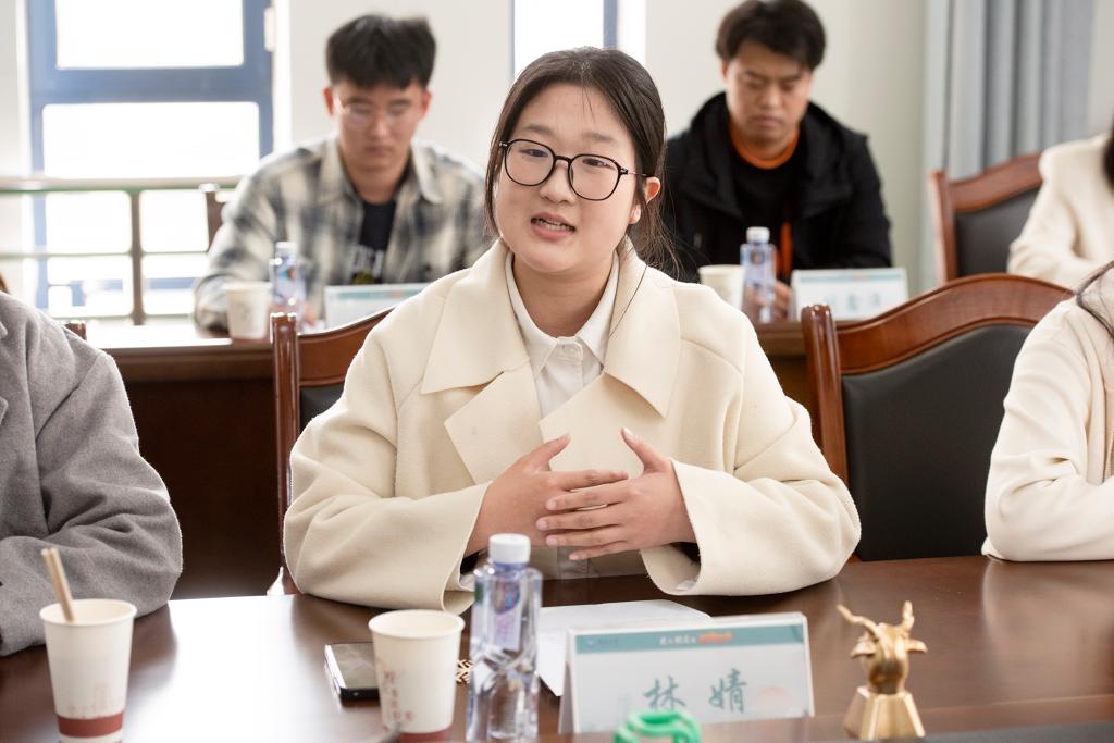 學生代表高靜、劉智慧、林婧、任祎婧、周暖景、王瑞、董立章、張振業、劉艷芮、劉明軒、張素素、劉鑫洋、董超、韓智羽、張順航、孔政翰、莊德源、江子雯、邱效龍、王修徵紛紛敞開心扉,分享自己在學習科研、實踐探索、科技創新和競賽拼搏中的點滴故事。有人為攻克實驗難題連續奮戰數月,有人為完善論文查閱上百篇文獻,有人為競賽方案反復打磨至深夜。音樂舞蹈學院王瑞同學現場飽含深情地演唱歌劇片段《我的入黨志愿書》,“我捧起入黨志愿書,就像捧起久旱的甘露。此時此刻我心潮起伏,寫下誓言,我銘心刻骨……”婉轉悠揚的旋律和歌聲博得熱烈掌聲。