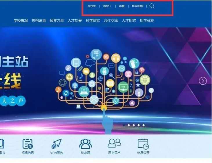 新版校園網主站根據學校的發展規劃和需求,重新規劃了網站的導航欄目,分為學校概況、機構設置、師資力量、人才培養、科學研究、合作交流、人才招聘、招生就業八個欄目。