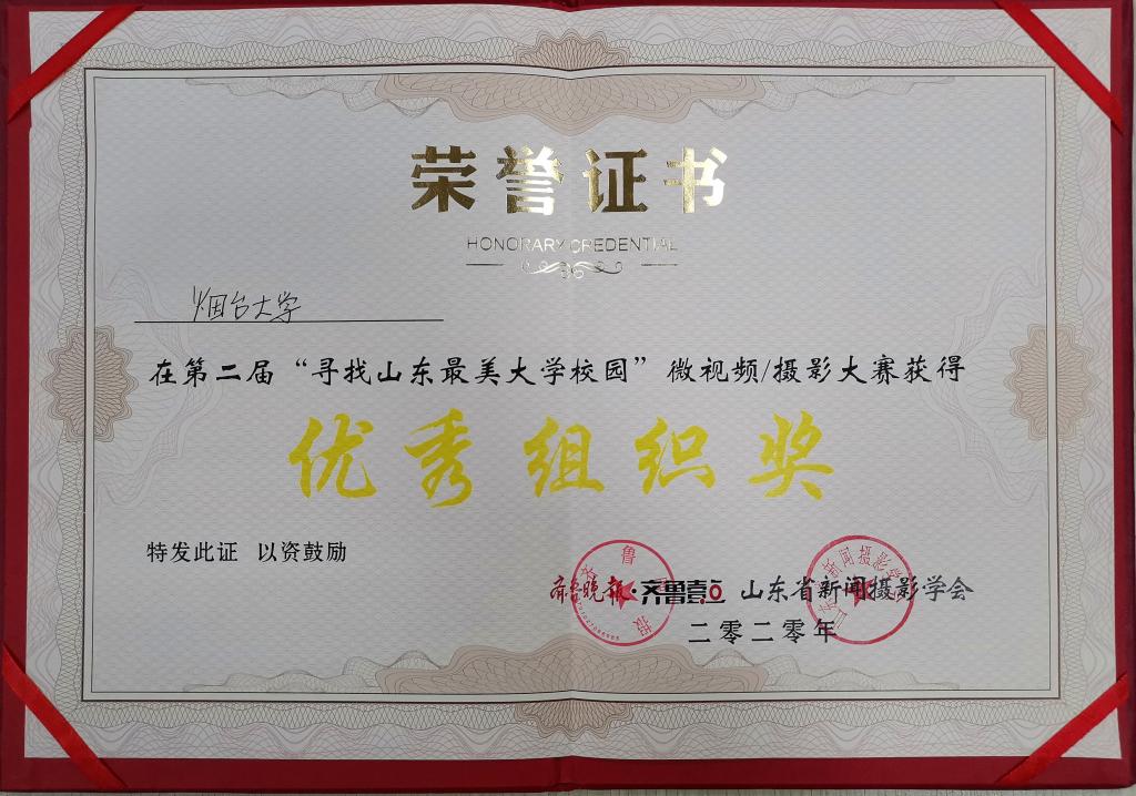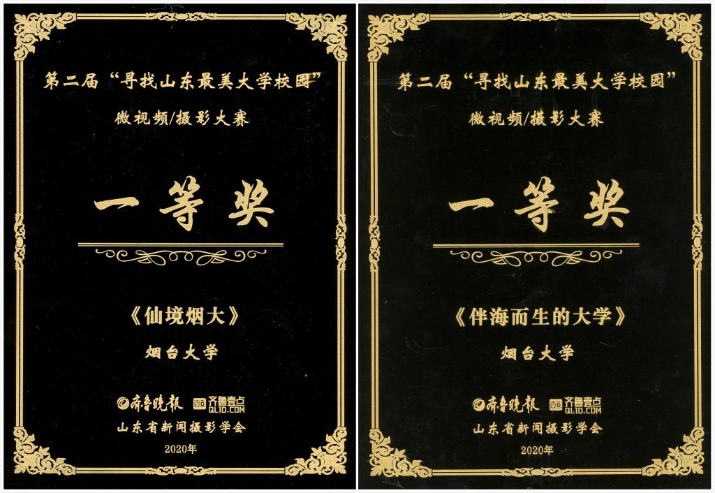 “尋找山東最美大學校園”微視頻、攝影大賽是齊魯晚報·齊魯壹點和山東省新聞攝影協會于2019年10月發起的品牌活動,旨在展現山東高校風采,展示山東大學生的青春與活力,促進美麗文明校園建設。今年9月21日啟動第二屆大賽活動后,全省各地的師生積極參與,優秀作品不斷涌現。大賽組委會共收到各種微視頻以及攝影作品900多份,其中644件作品進入初選,組委會根據網絡投票與專家評委打分情況按比例計算出總分,又從這600多件作品中確定了最終的獲獎名單,其中攝影類與視頻類一等獎作品僅各設5件。煙臺大學袁兆軍老師創作的《仙境煙大》攝影作品與人文學院新171—2黃昕婧同學創作的微視頻《伴海而生的煙臺大學》分別以其藝術性和傳播性得到專家評委的一致好評,分獲一等獎。