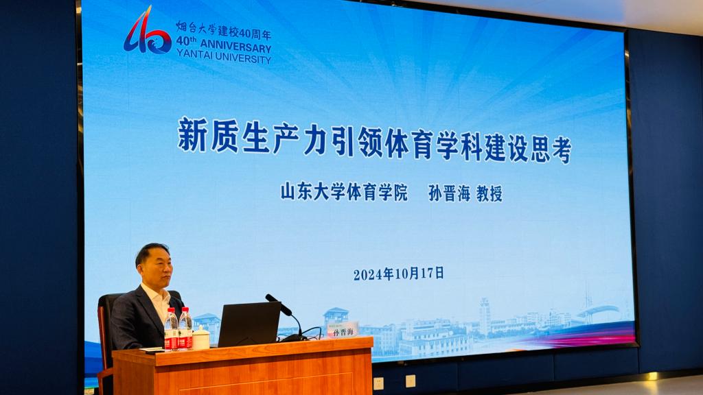 為慶祝煙臺大學建校40周年,體育學院于10月17日邀請“泰山學者”特聘教授、山東大學體育學院院長孫晉海教授做客煙大三元名家論壇,做了題為“新質生產力引領體育學科建設思考”的學術報告。報告由體育學院院長徐陽主持,學院師生約100人參加。