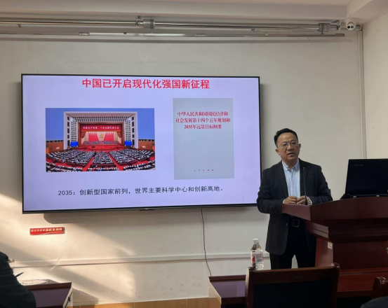 吳金希教授首先向大家介紹了中國科技創新的成就以及創新發展的現狀。據此,他提出了能夠優化創新生態體系、助力科技強國的四項戰略,并對每一項戰略內容進行了詳細解讀。吳金希教授對現階段能源低碳化面臨的困難進行了全面分析,他勉勵同學們直面嚴峻挑戰、把握機會,共同推進新時代科技強國新征程。